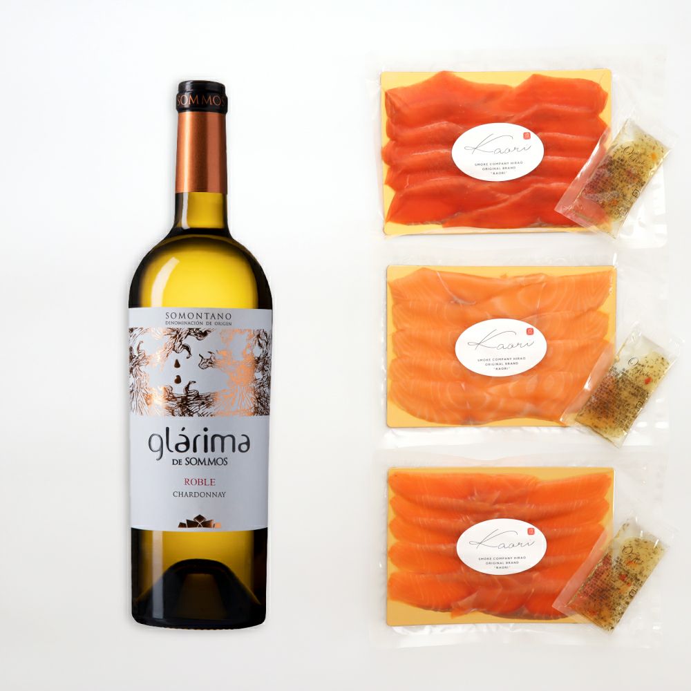 グラリマ・ロブレ・ブランコと、Kaoriのスモークサーモン3種(紅鮭・アトラン・トラウト)とのペアリングです。