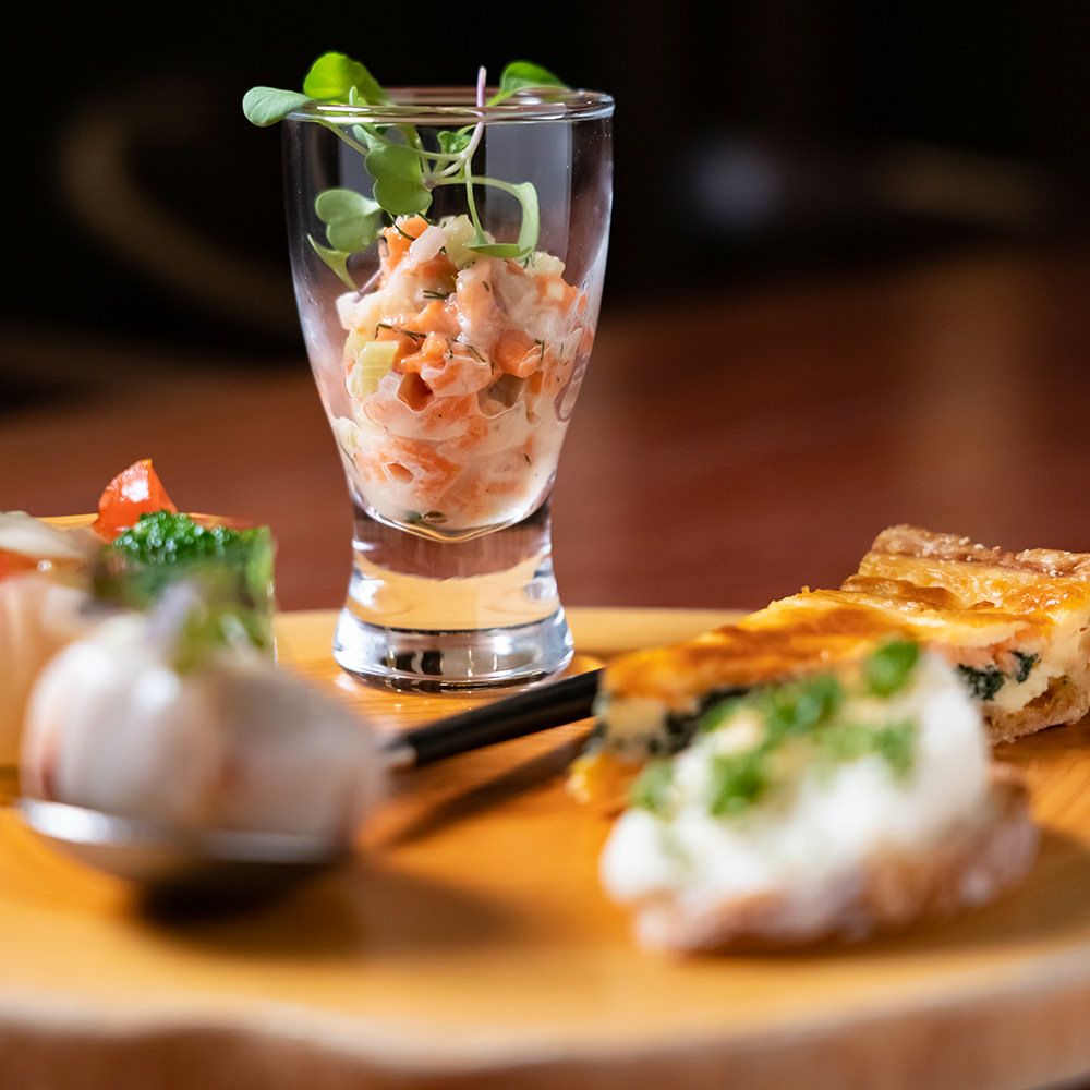 Kaoriで人気のスモーク5種(キングサーモン・紅鮭・かんぱち・真鯛・帆立)を食べられる、お味見におすすめのセットです。1人用のおつまみやおかずとしてもご利用いただけます。