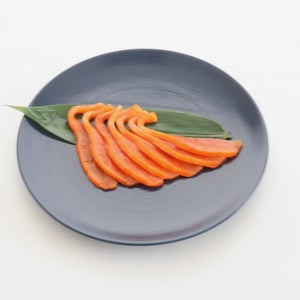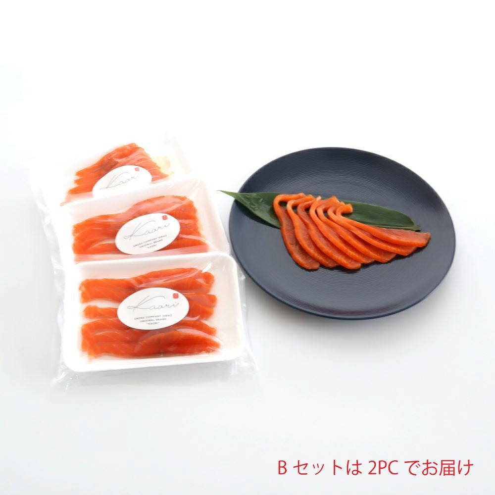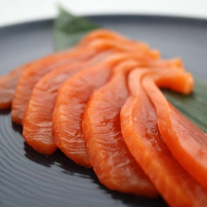 程よい脂乗りと鮭本来の味を楽しめる『スモーク天然紅鮭』。厚みがあり、ふんわりと柔らかく、スモークの豊かな薫りと風味が口中に広がる至福の味わいをご堪能ください。