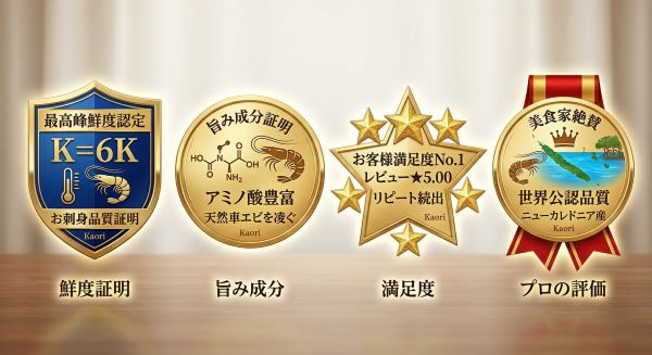 世界のプロ料理人が絶賛する理由は、圧倒的な鮮度と極上の旨みにあります。水揚げ直後の急速冷凍により、一般的なお刺身基準を遥かに凌ぐ驚異の鮮度「K値6K」を維持。天然車エビ以上の豊富なアミノ酸を含み、お刺身で食べれば、これまでにない濃厚な甘みが口いっぱいに広がります。