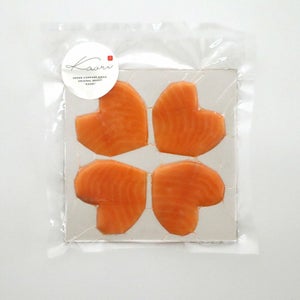 特別な日に用意したくなるハート形のスモークサーモンです。可愛らしい見た目ですが、味は本物。薫りはもちろん、上品な脂の甘みもお楽しみいただけます。幸せな気持ちの時、大切な方の幸福を祈る時、大切な方に気持ちを贈りたい時におすすめです。