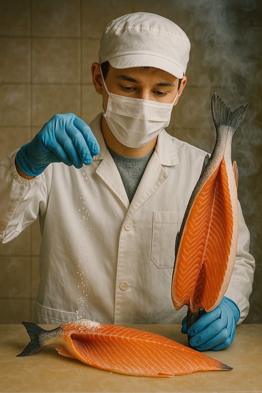 (年齢:50代 出身:大阪府) 燻製工場の3代目工場長です。燻製の製造工場としては老舗ですが、新しいアイデア等もドンドン取り入れて行き、既存の方法に囚われない自由な発想の製品を作っていきます。