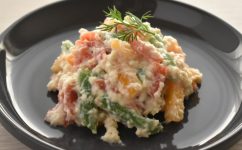 <レシピ>天然紅鮭のスモークサーモンと柿の白和え