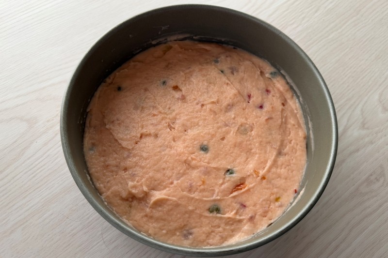 ③直径18㎝の耐熱容器(ケーキ型など)に入れて表面を平らにならす。